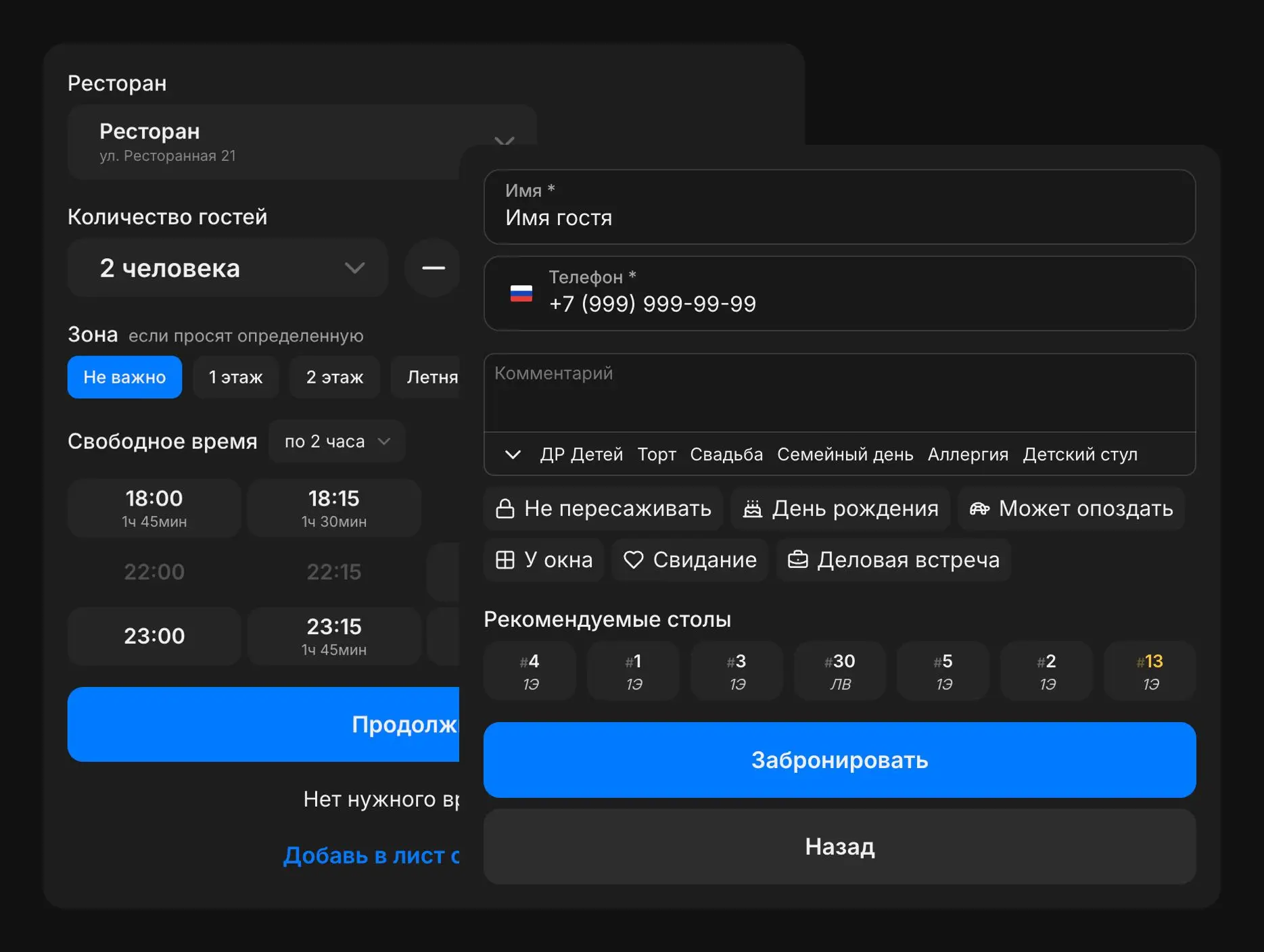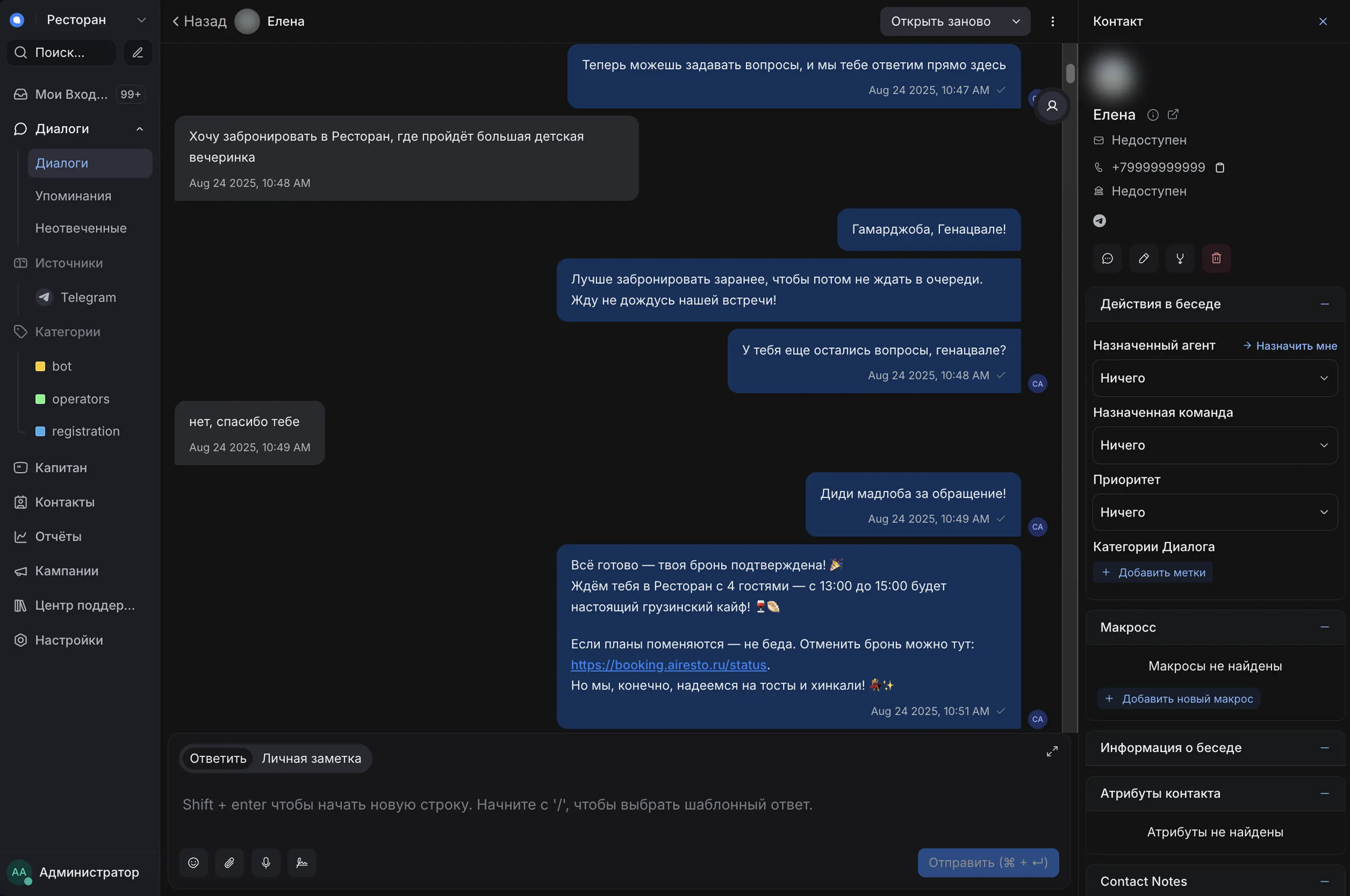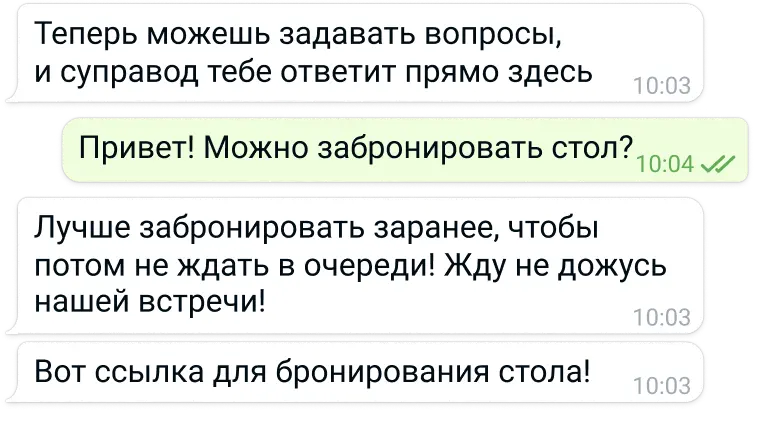Дайте возможность вашим гостям быстро забронировать столик или сделать особый запрос, а команде — видеть всю историю общения